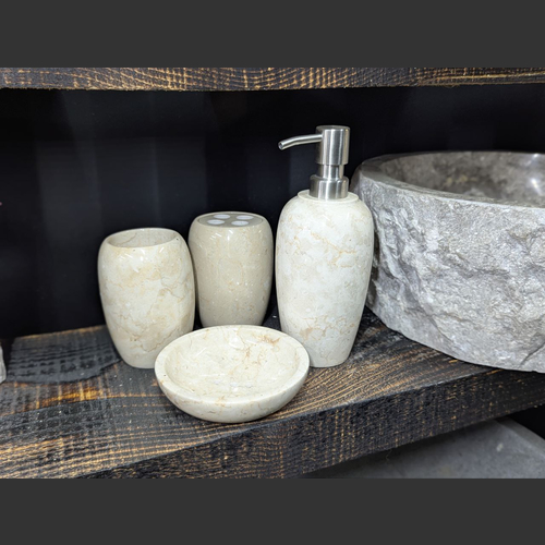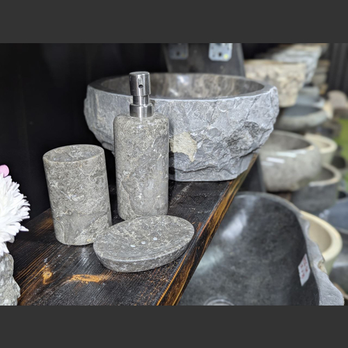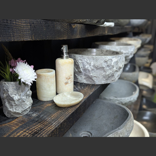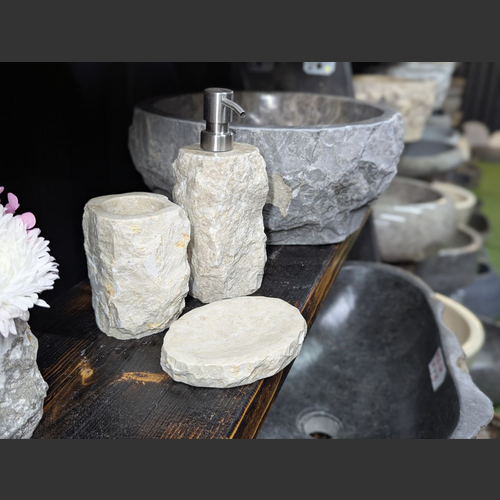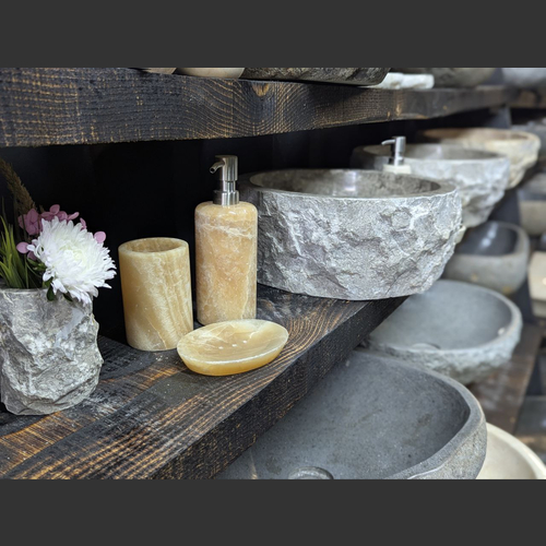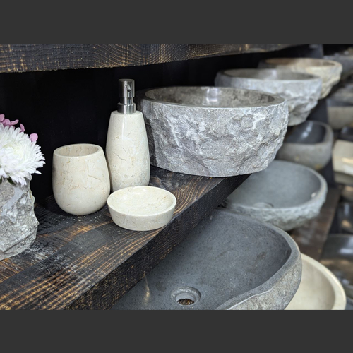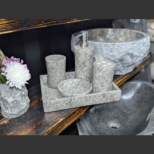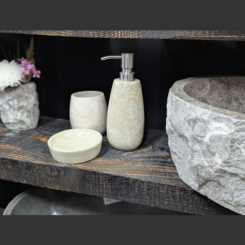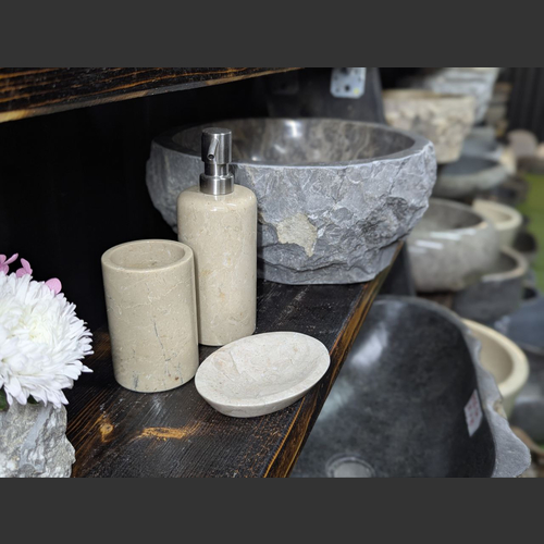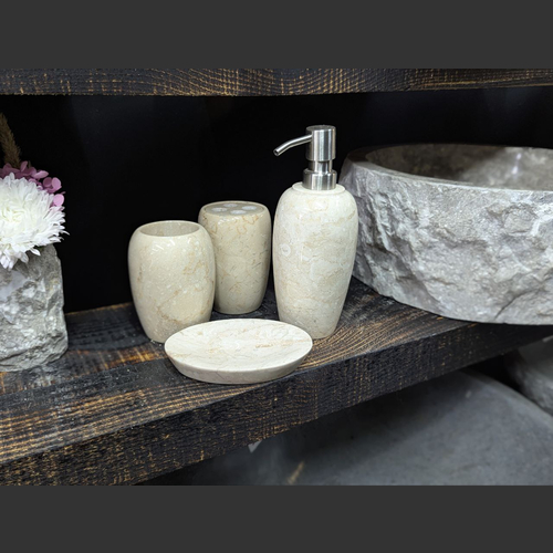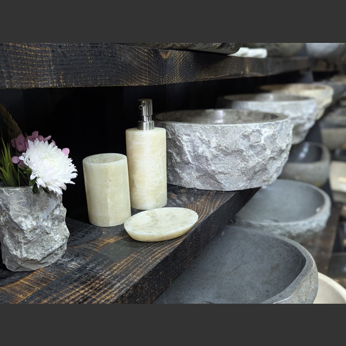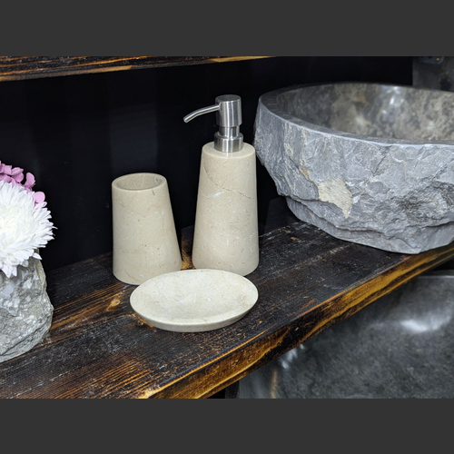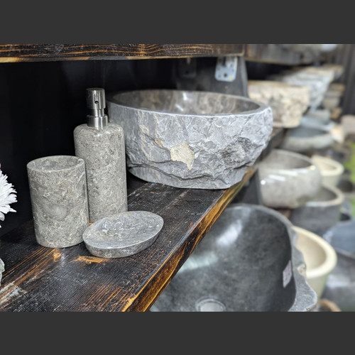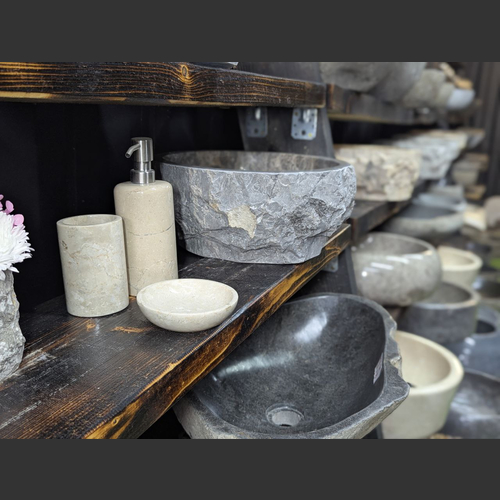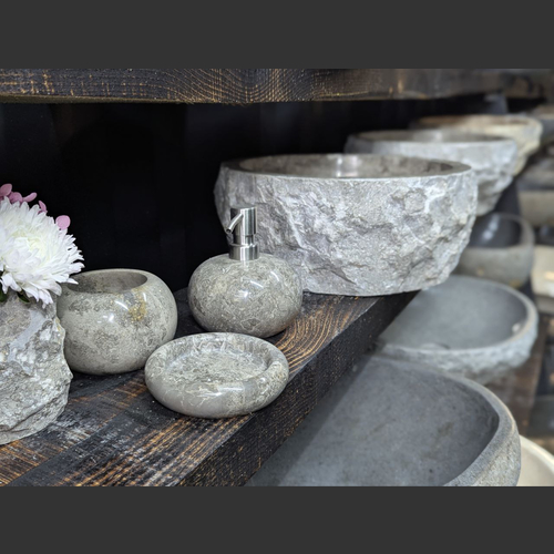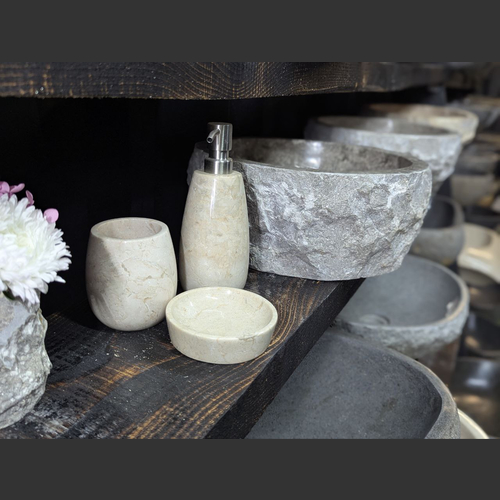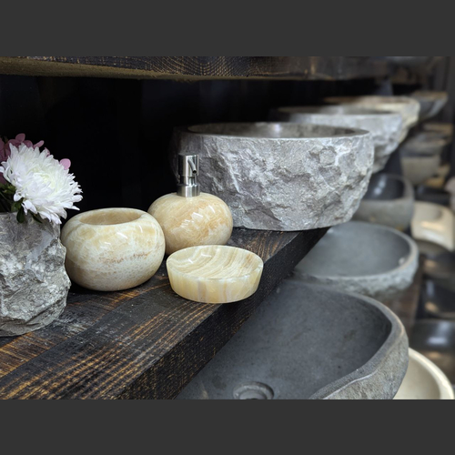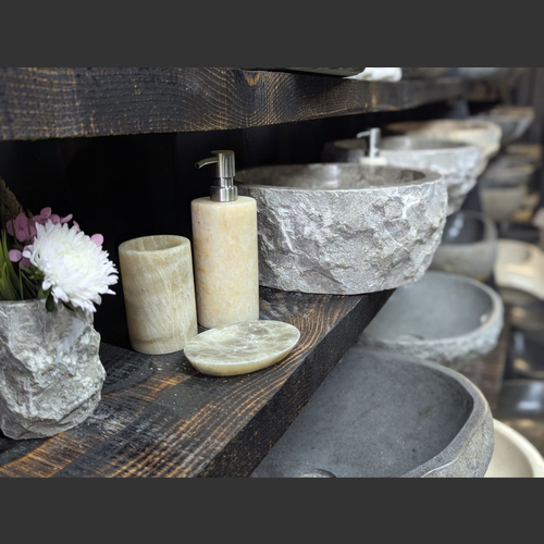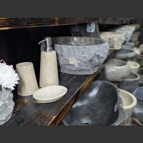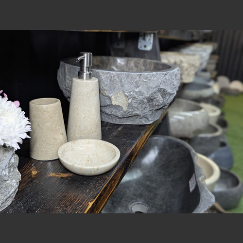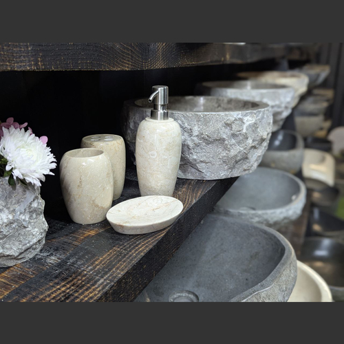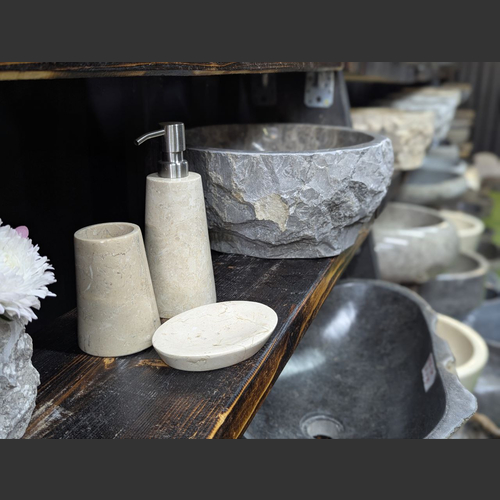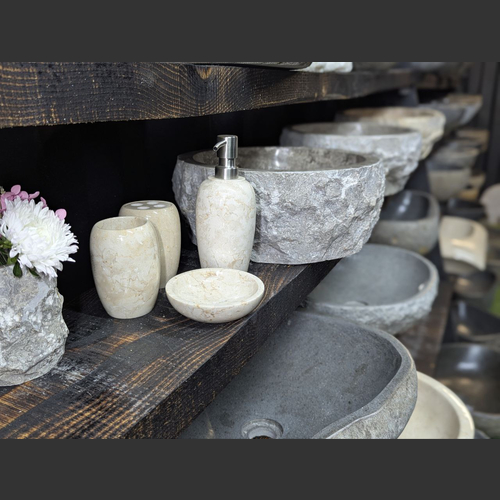 Для удобства мы предлагаем комплекты: раковина + донный клапан, мыльница, диспенсер. Всё выполнено из того же камня.