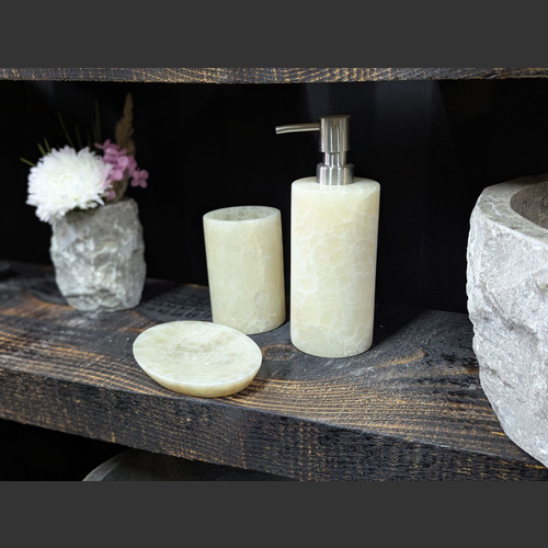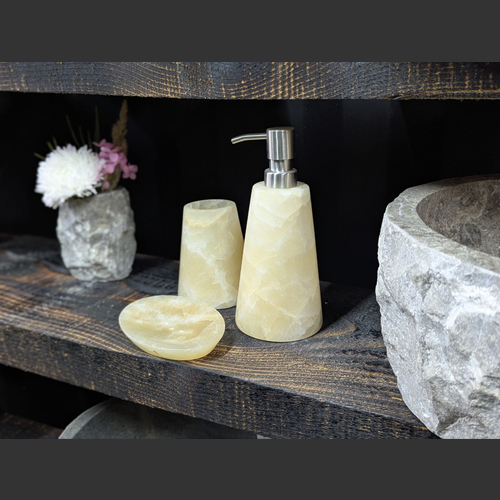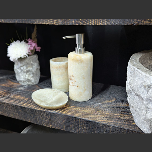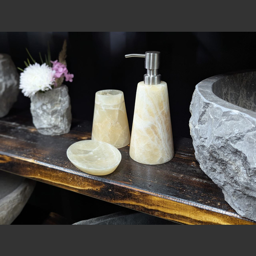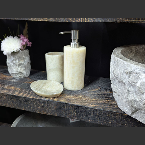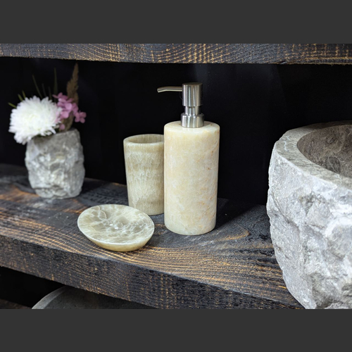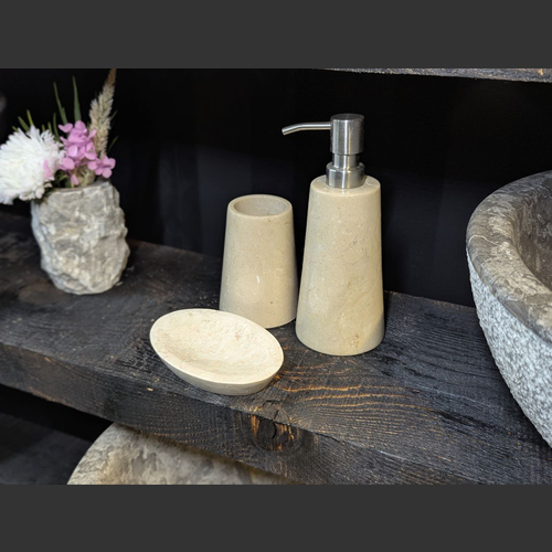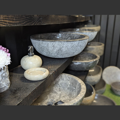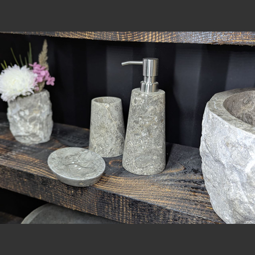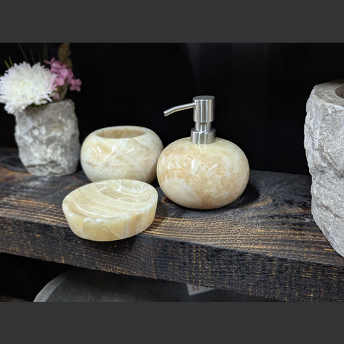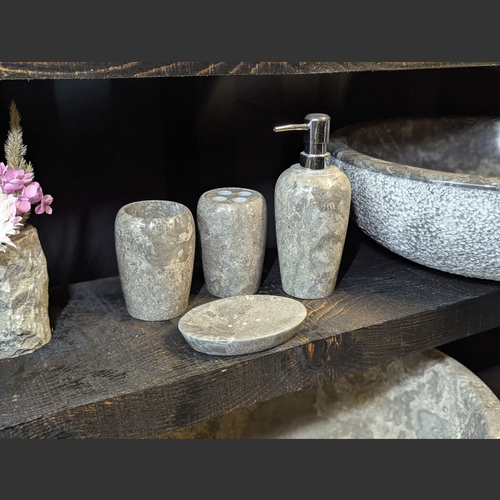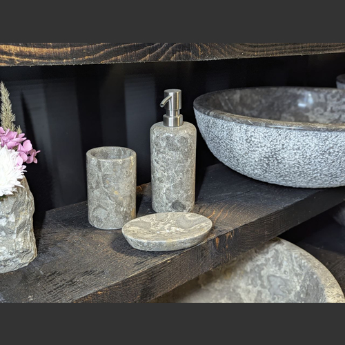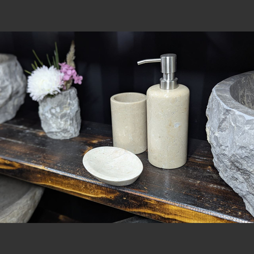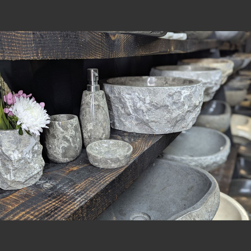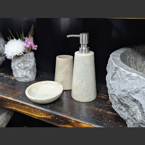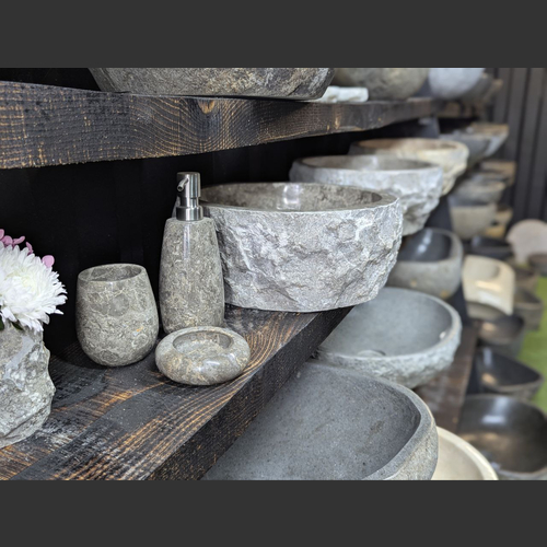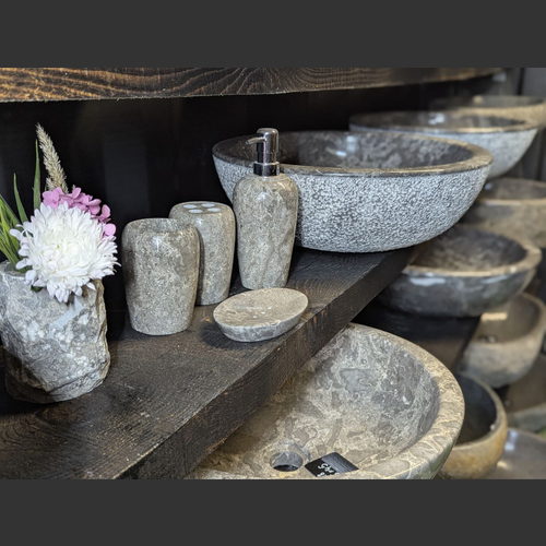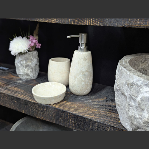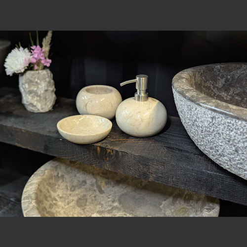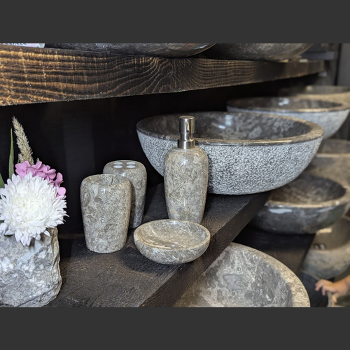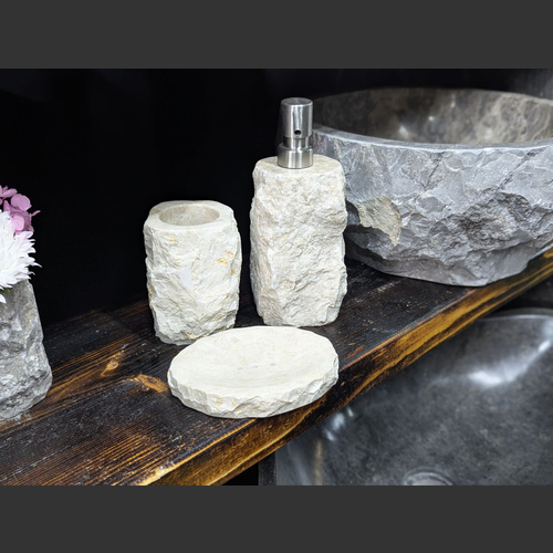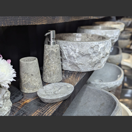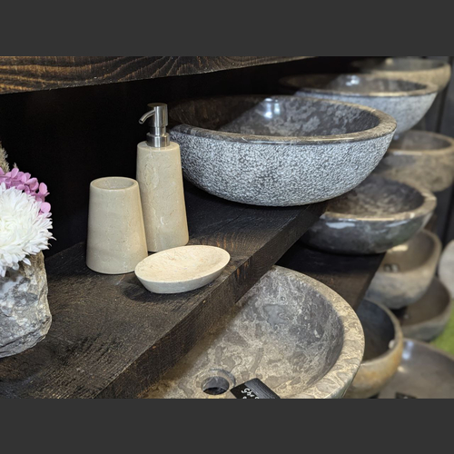Для удобства мы предлагаем комплекты: раковина + донный клапан, мыльница, диспенсер. Всё выполнено из того же камня.