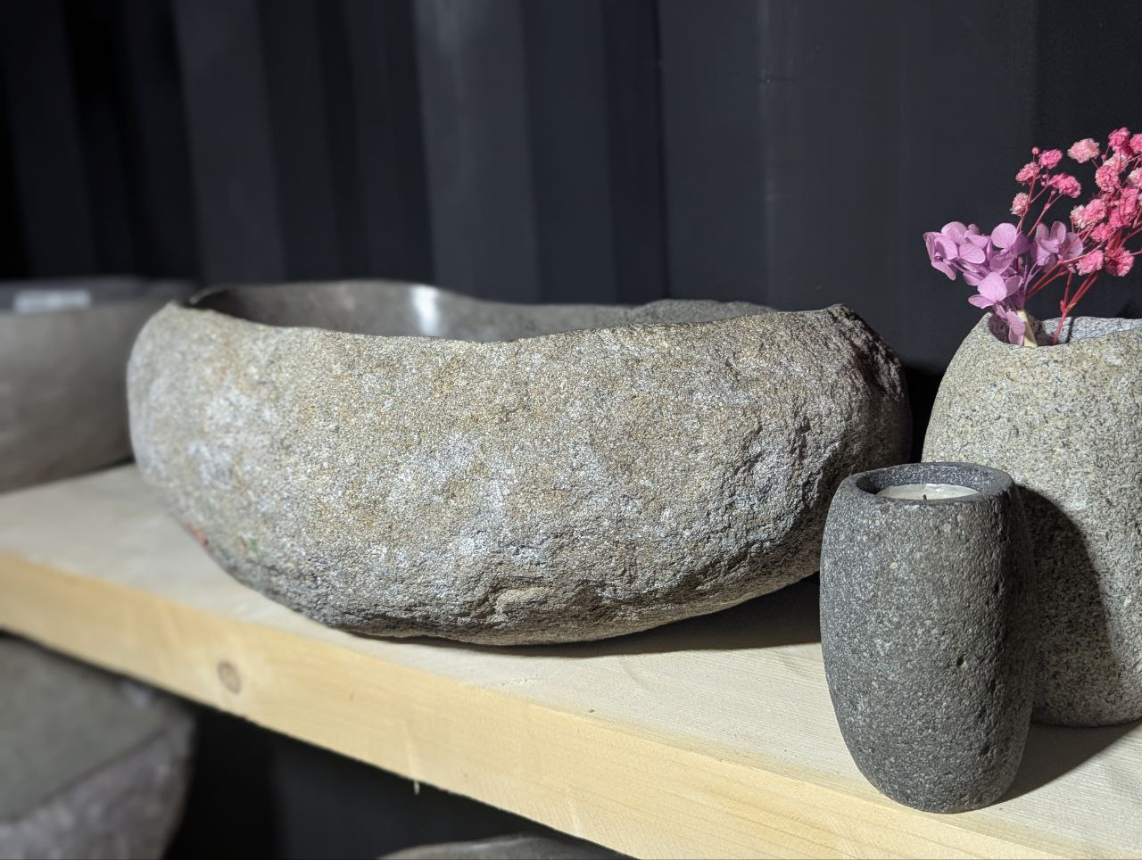 Каждая раковина — это вручную обработанный цельный валун, сохранивший природную фактуру и цвет. Внутри поверхность отполирована до гладкости для удобства ухода и долговечности. Нет двух одинаковых экземпляров — все формы и оттенки созданы самой природой.