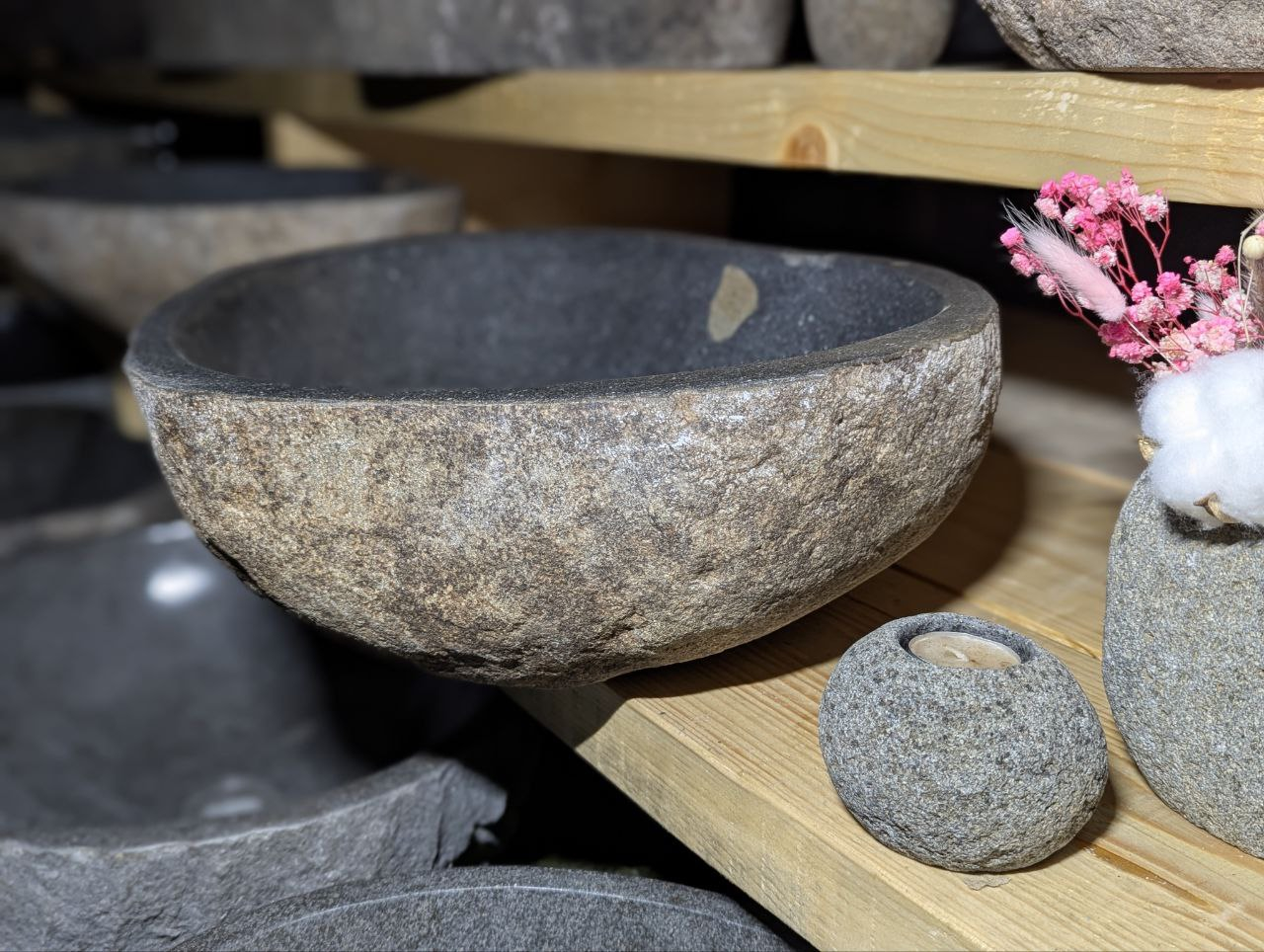 Раковина из натурального речного камня артикул 172-5039 — уникальная модель в форме сердца. Поверхность тщательно отшлифована внутри и сохранена в естественной фактуре снаружи. Камень имеет природные вкрапления — это естественная структура породы, не дефект и не клей.