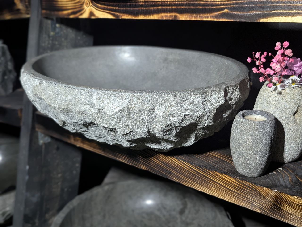 - Раковина изготовлена вручную из цельного природного валуна речного происхождения.